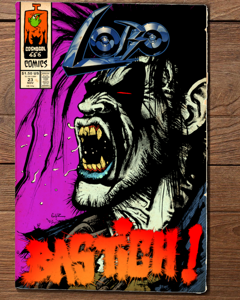 Amongst burning planets and billions dying, as the battle of all of technology versus the Last Czarnian is about to reach it’s end, an agonizing Lobo sees the end draw near… With his last dying breath, the Main Man shouts with all his might the final ultimate insult. A curse word so impious, so filthy, born from such infinite hate, that it insults and offends all of creation and beyond, from the mighty galaxies down to every singular tachyon !